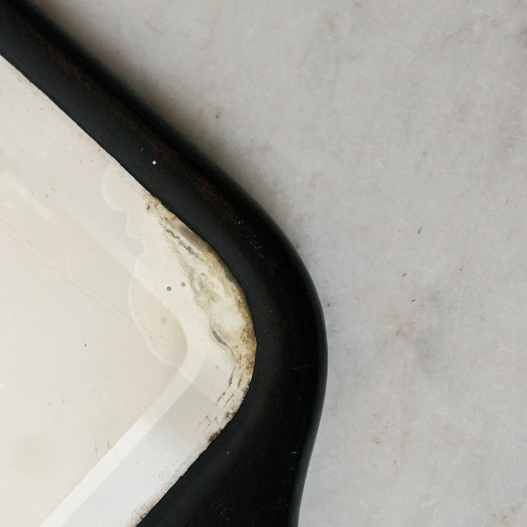 This mirror was once used on a French dressing table. We love the polished wood frame and the hazy mirror glass.