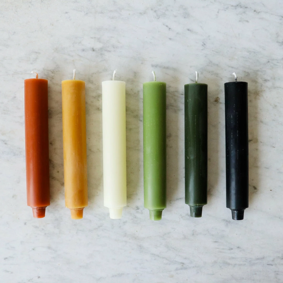 These beeswax tapers burn clean and bright and give off the faintest beeswax fragrance as they burn.ย