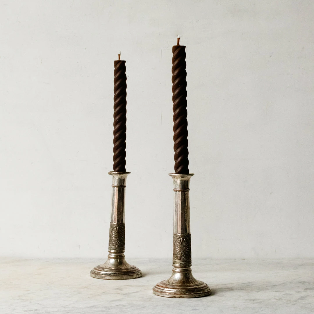 - Set includes the matched pair of candlesticks shown and a pair of espresso beeswax twist tapers.