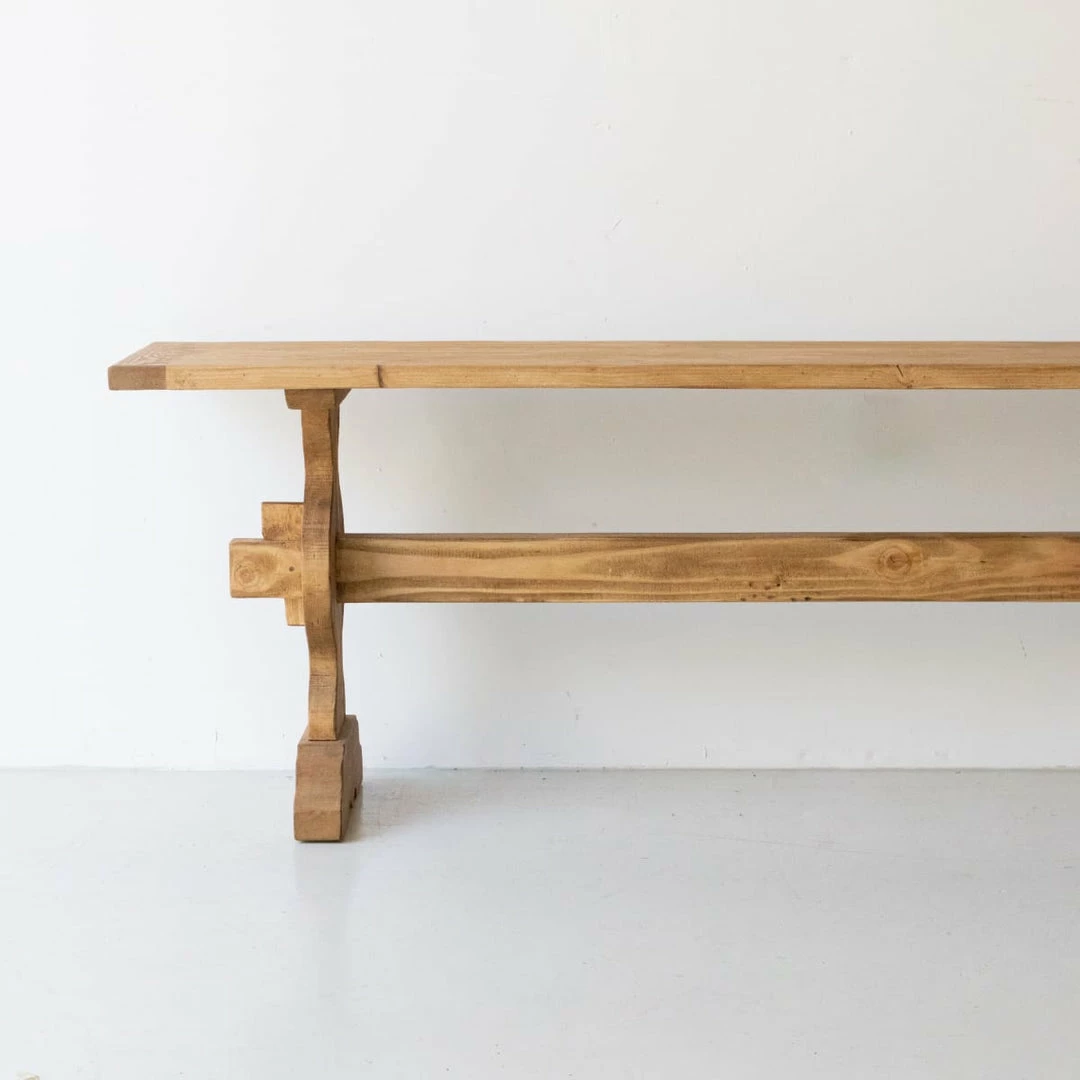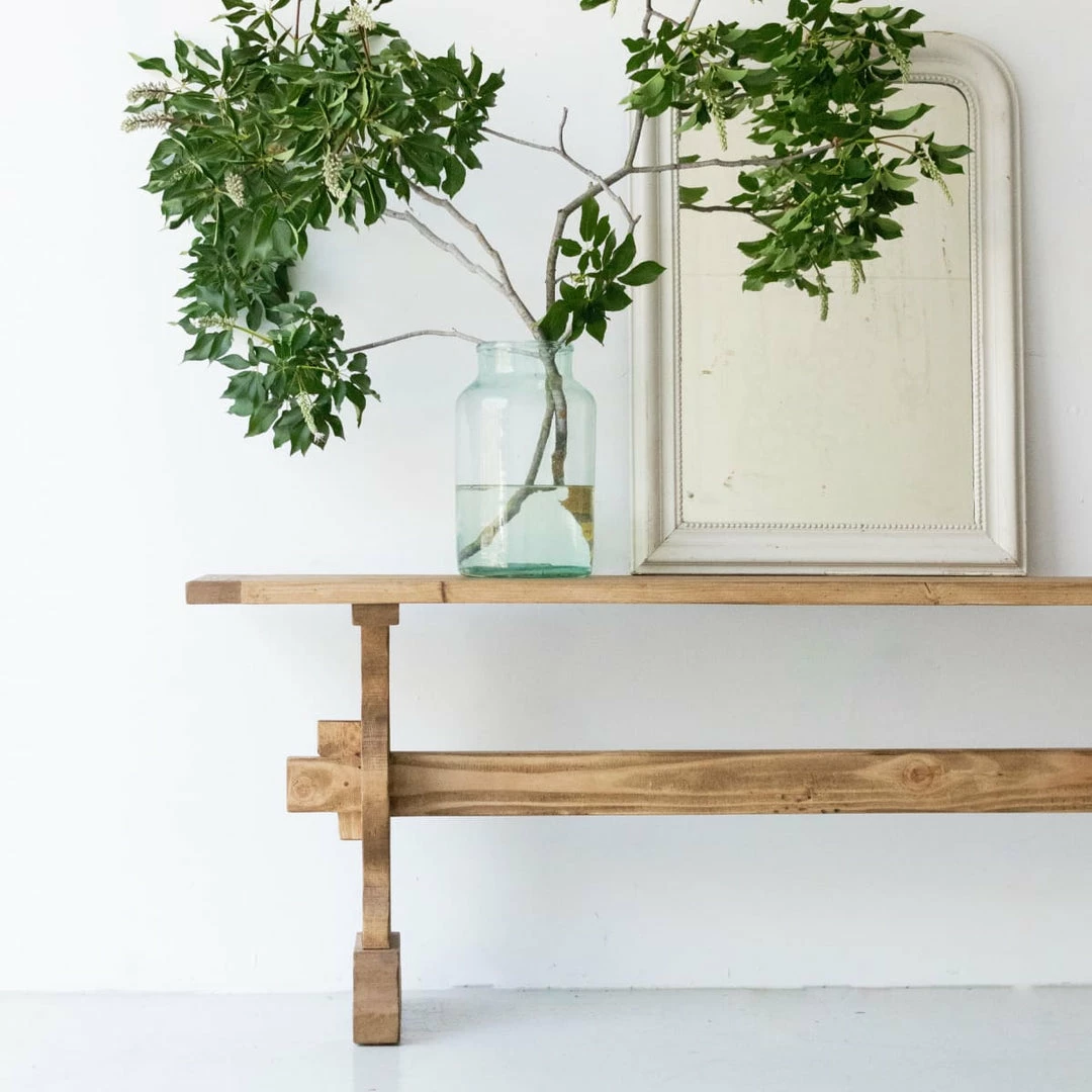 This console was inspired by a classic French Monastery table. The design is boiled down to the essence of form and function: it’s made from beautiful, reclaimed wood, waxed, and perfectly proportioned.