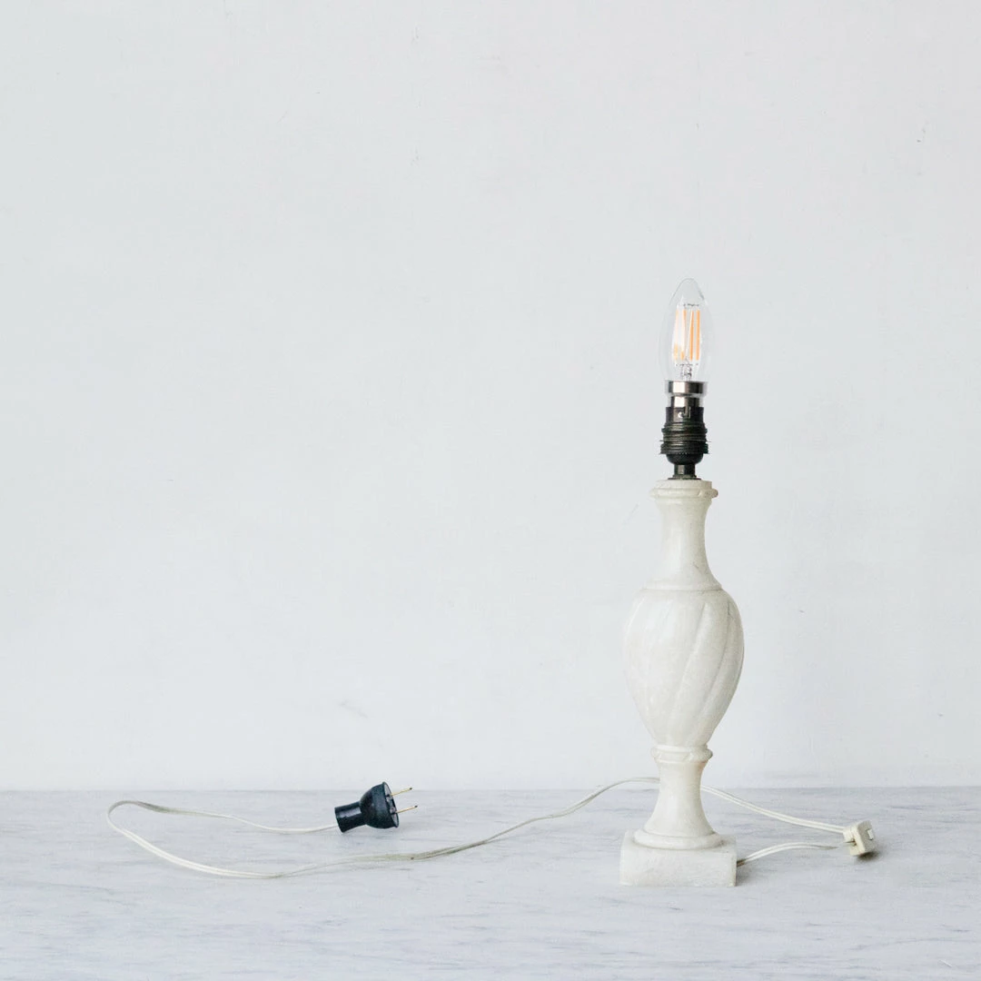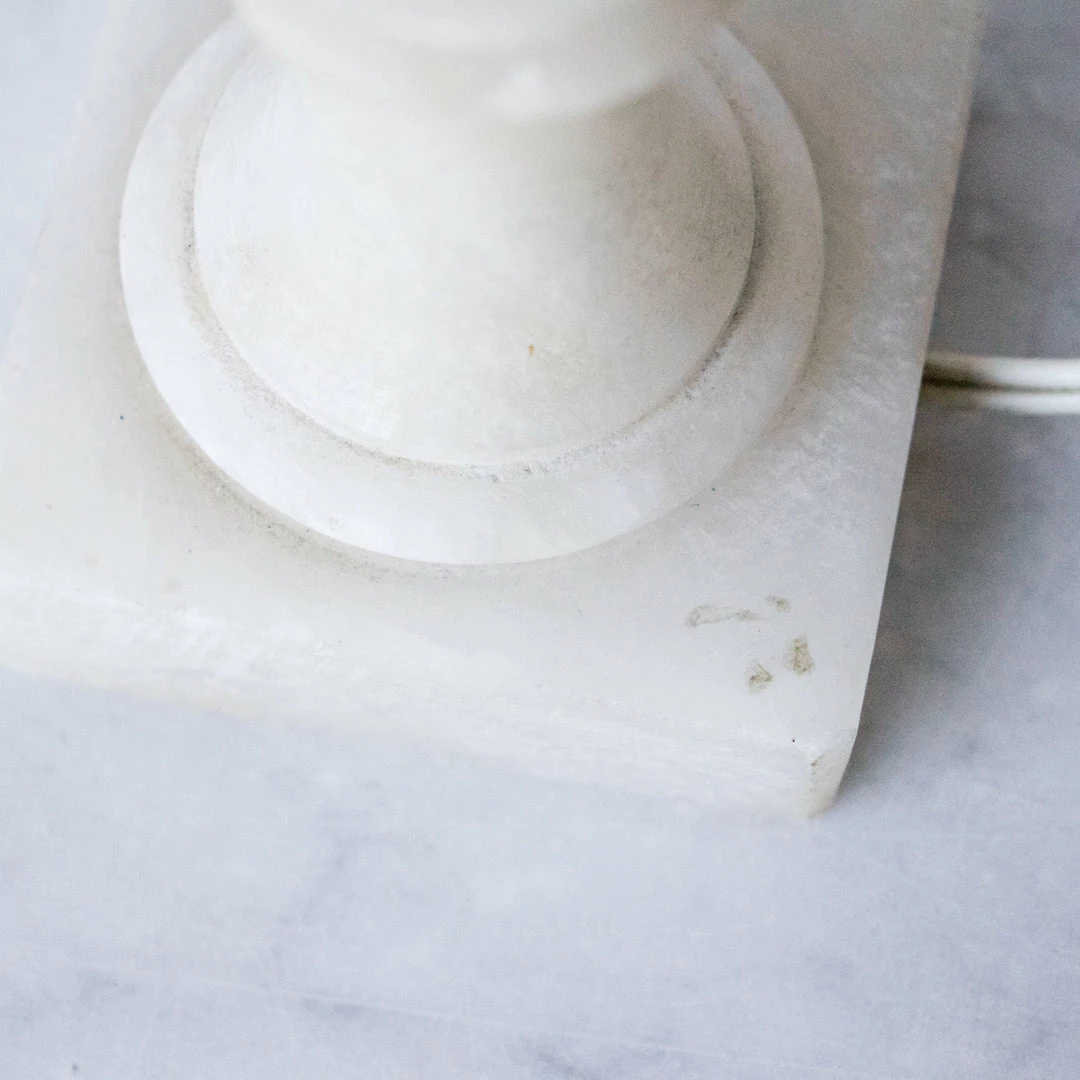 This sweet little accent lamp has an alabaster base and a pretty white chord. We love the burnished quality of the brass, made lustrous with time and use.