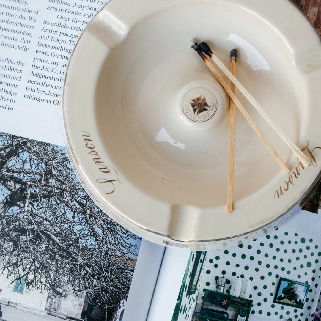 This ashtray is a relic of a time gone by when every bistro had an ashtray on the table. Now we think it’s a pretty tray for matches or something nice to hold your jewelry by the bedside.