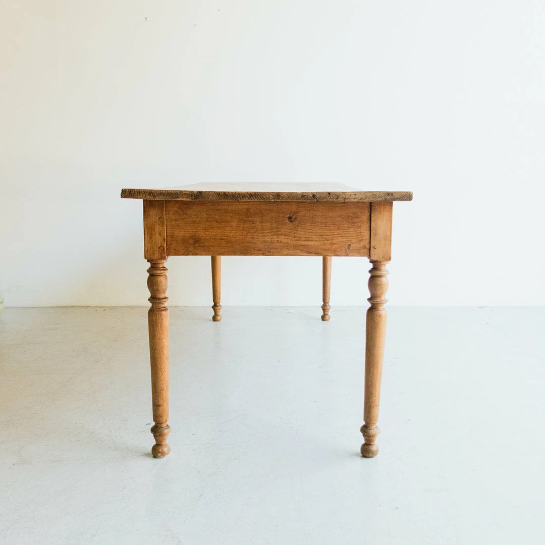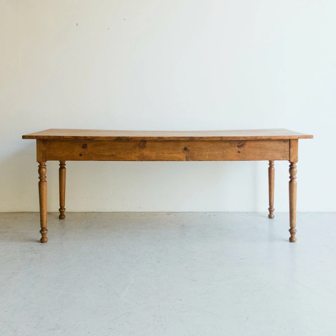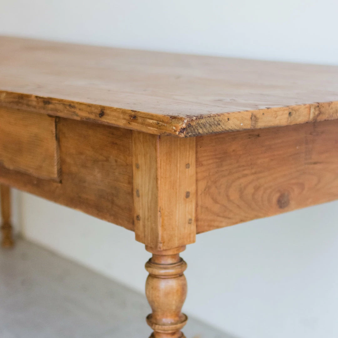 This table was once used in a French kitchen and shows all the marks of time and age that typical in a well loved farm table should have. The glow of the finish can not be replicated in a new piece of furniture.