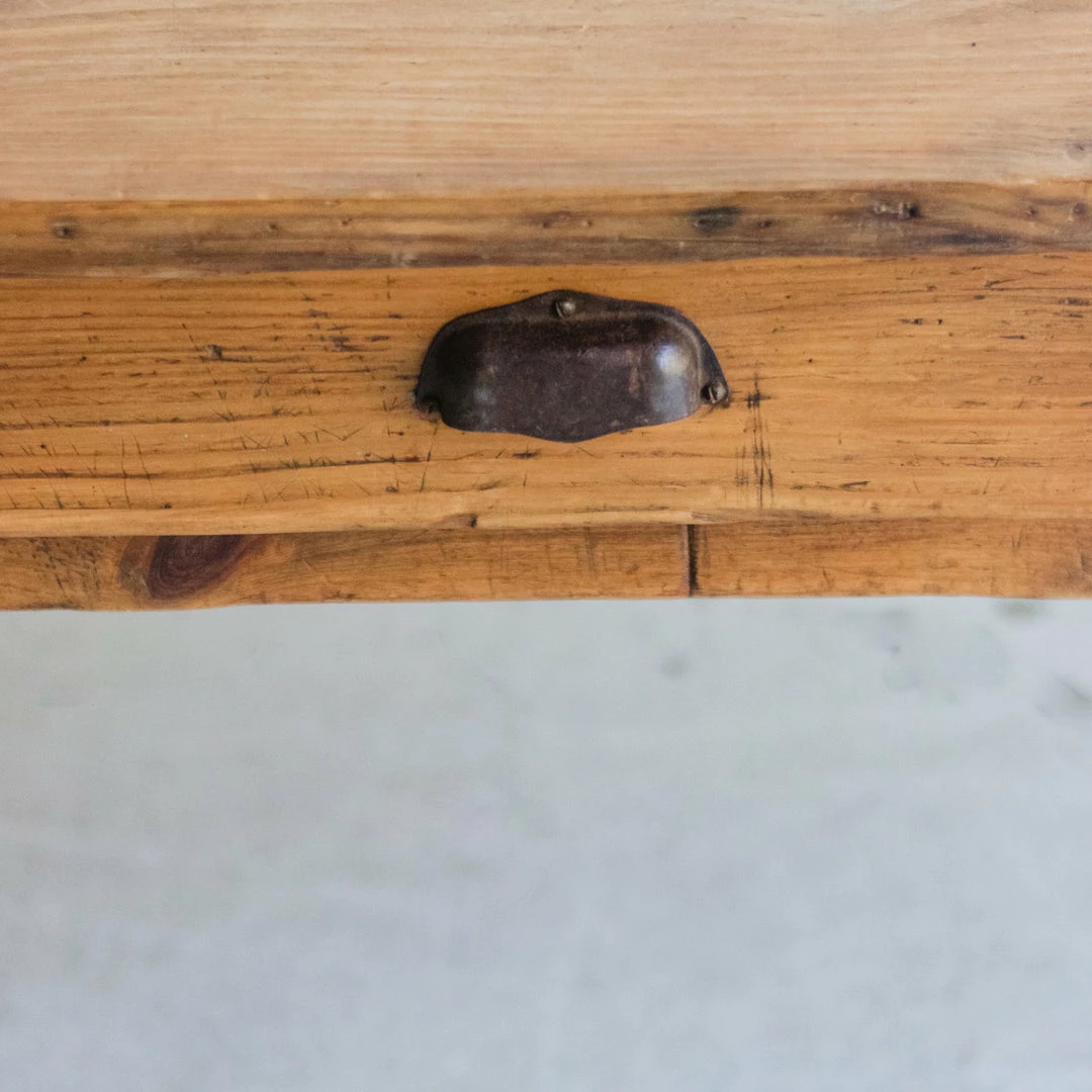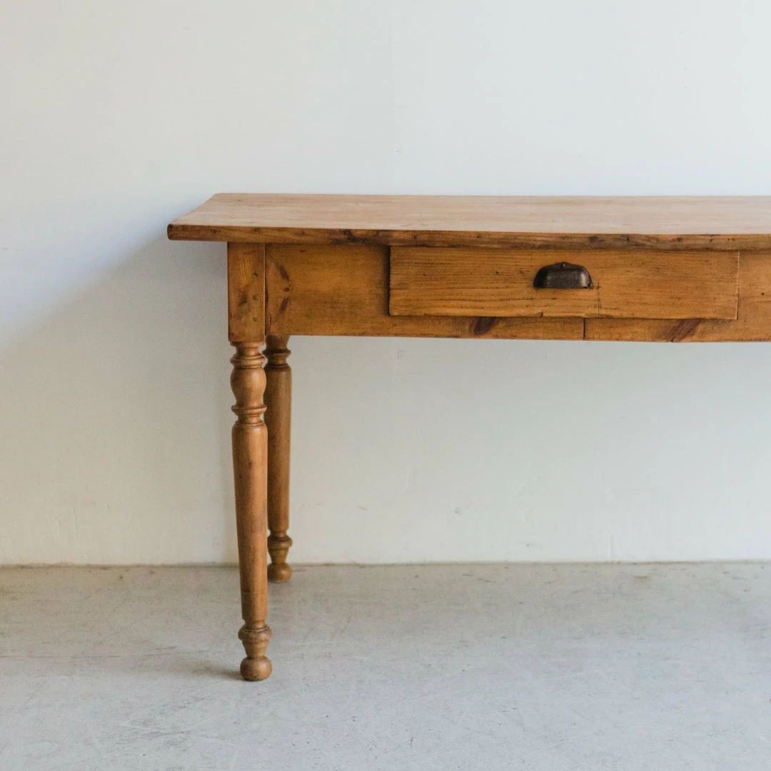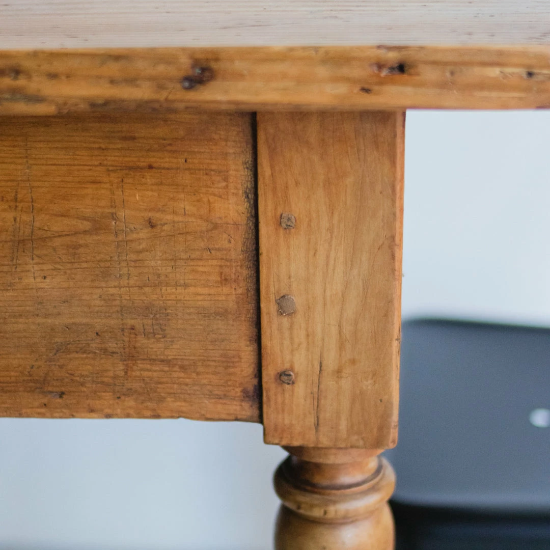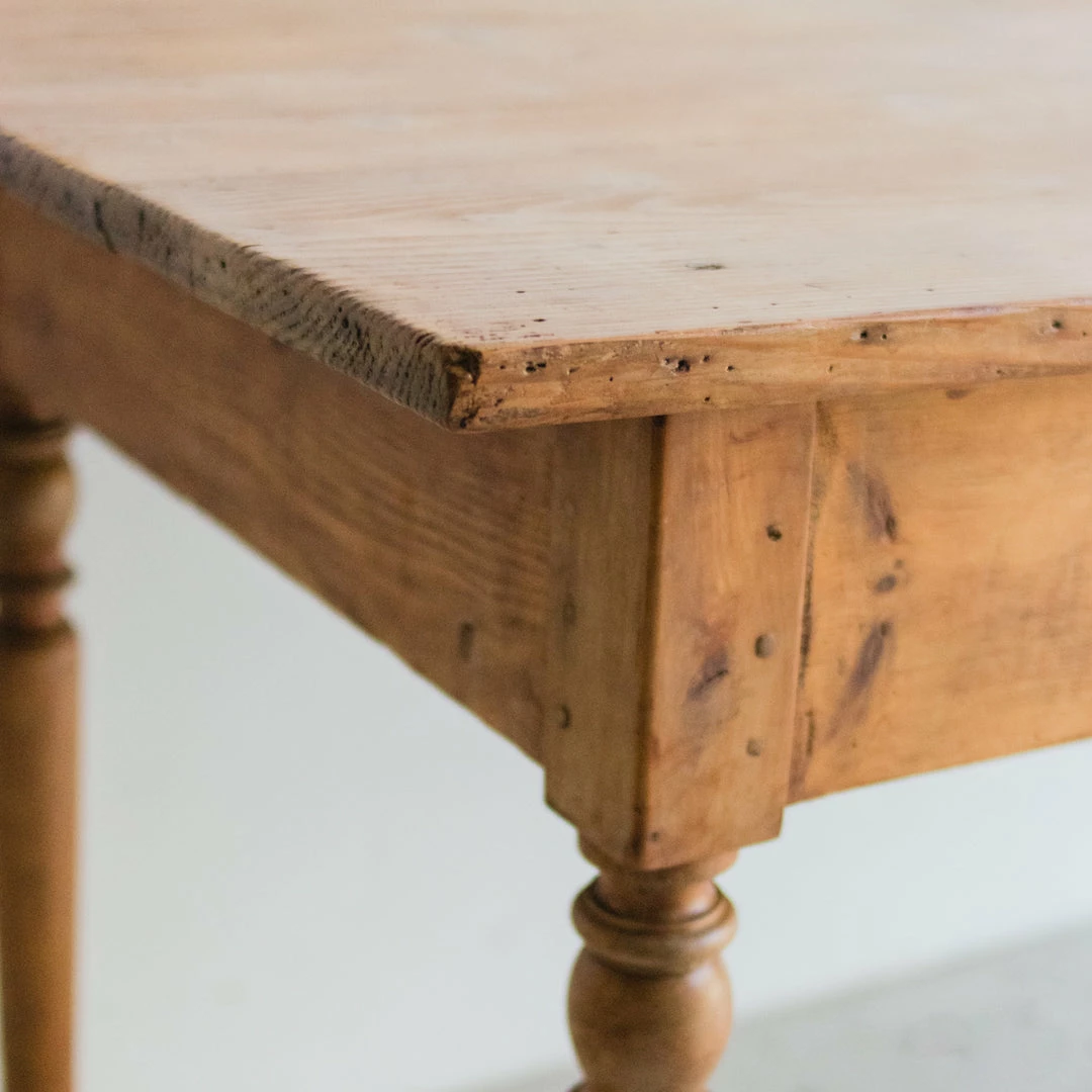 This table was once used in a French kitchen and shows all the marks of time and age that typical in a well loved farm table should have. The glow of the finish can not be replicated in a new piece of furniture.