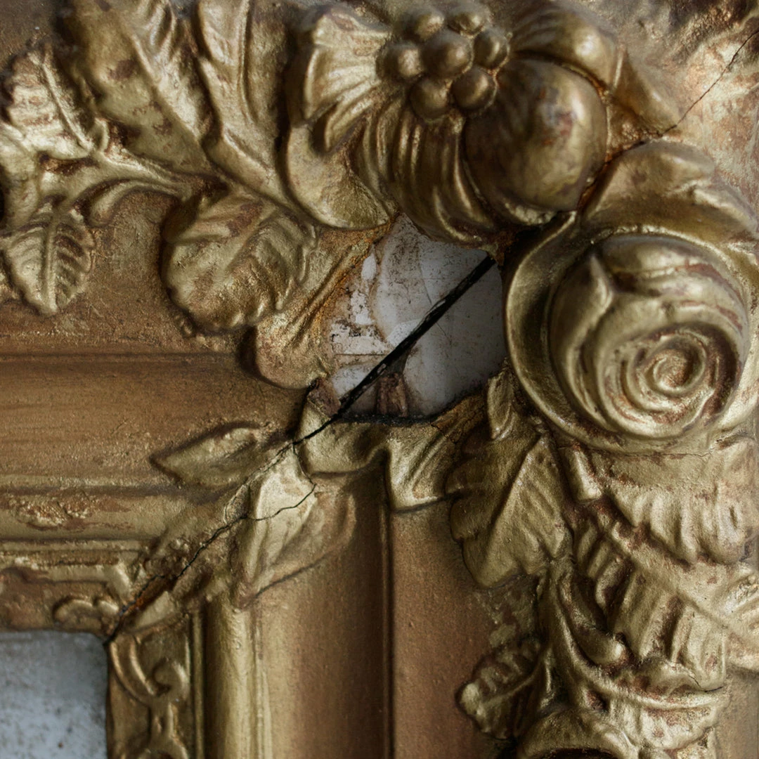 - Wood and plaster frame, painted gold.