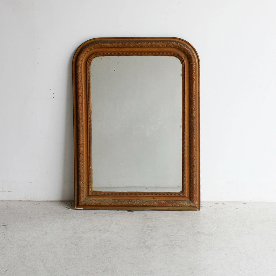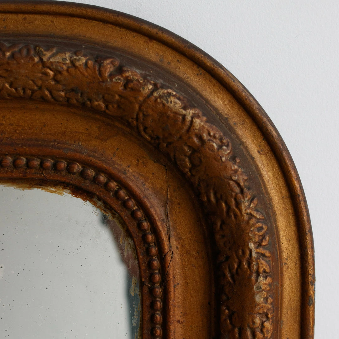 The Louis Philippe style of mirror is one of our favorites, with its soft shoulders at the top and strong corners at the bottom. This example is especially pretty with its authentic gilded finish.