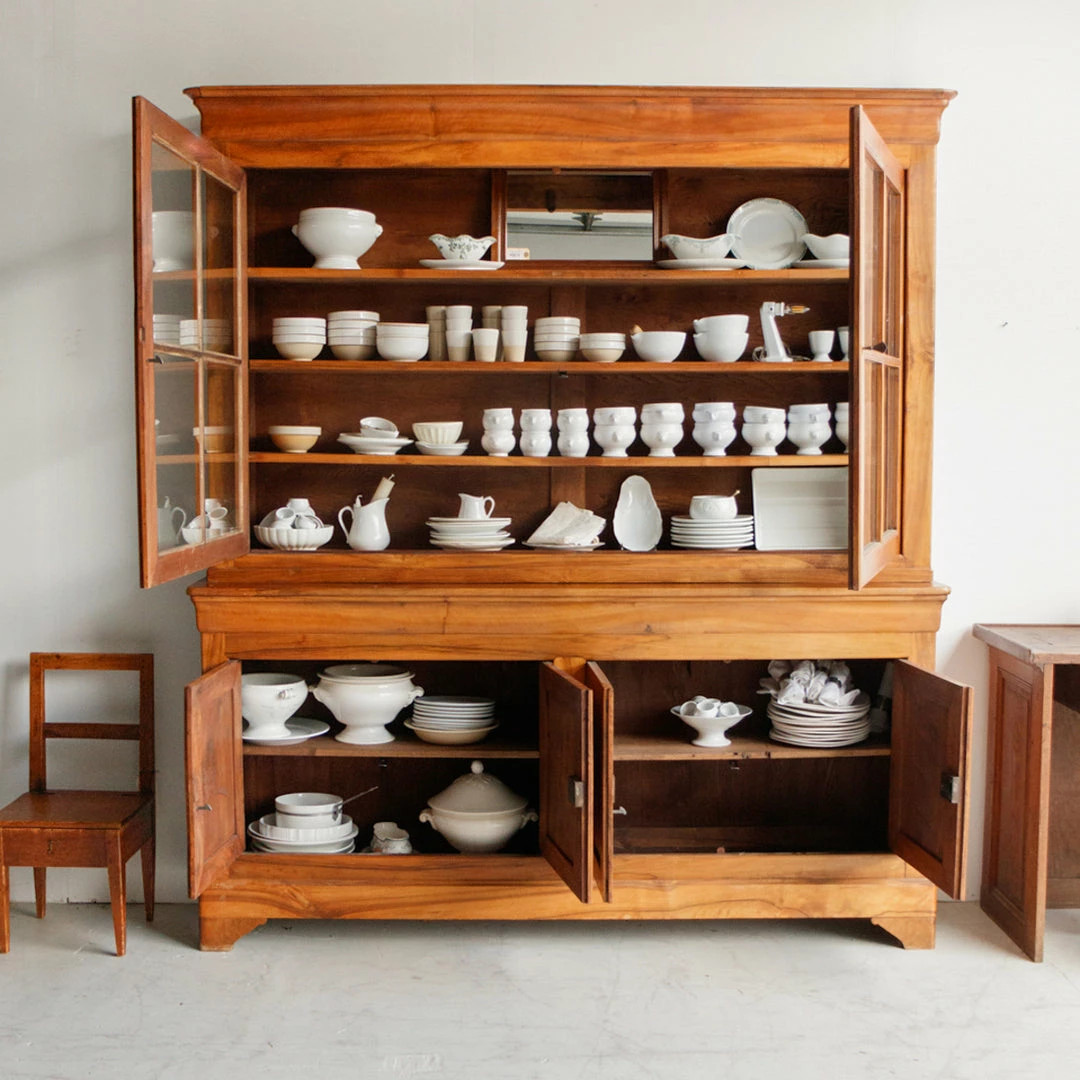 We love the dramatic proportions of this beautiful cabinet. It once lived in a French library. Now we think it is the perfect piece to store your collection of ironstone.