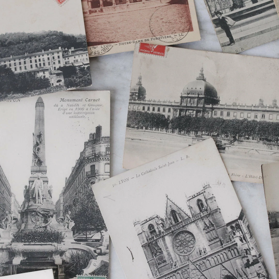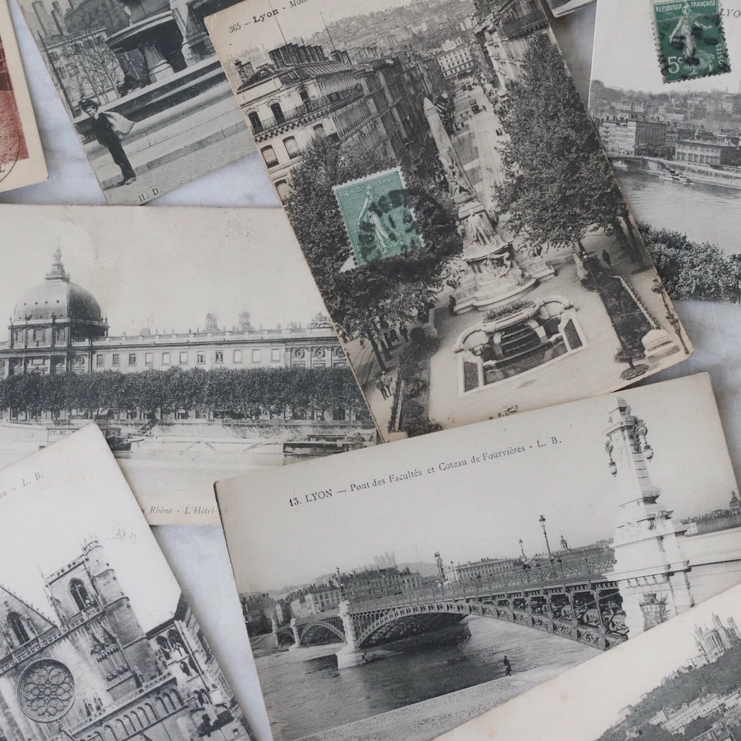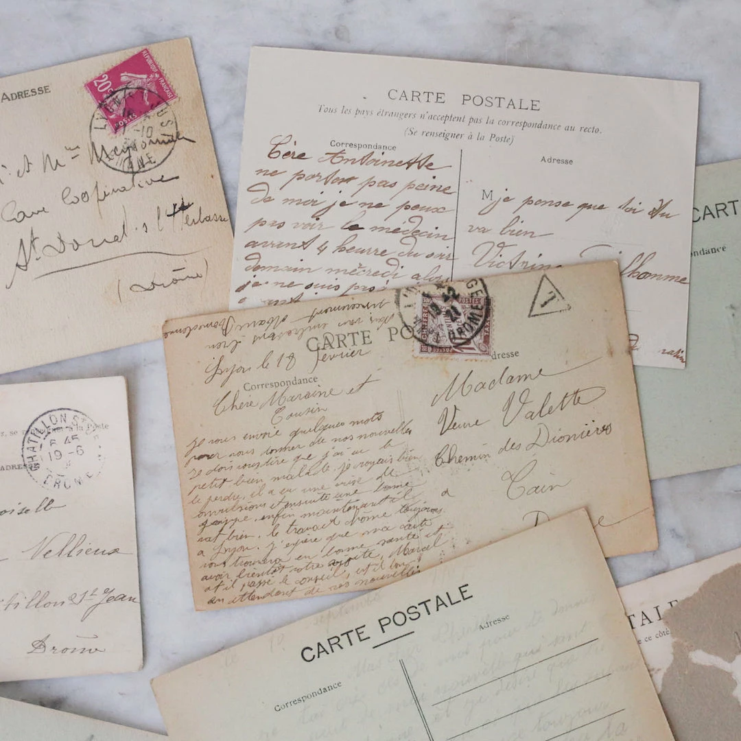 This collection of postcards was collected one by one from flea markets across the French countryside. Some have been written and posted, others are blank. All are vintage, and each set is unique.