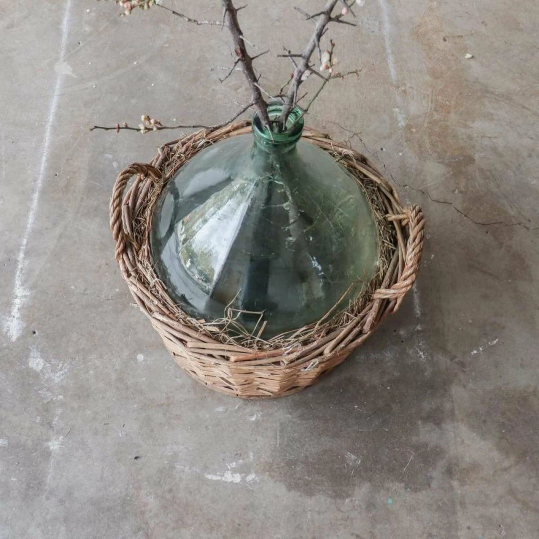These oil bottles were protected with straw and woven basketry to keep them from breaking as they were carried to the press.ย