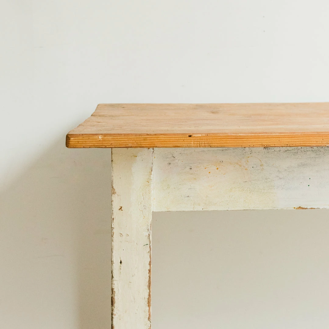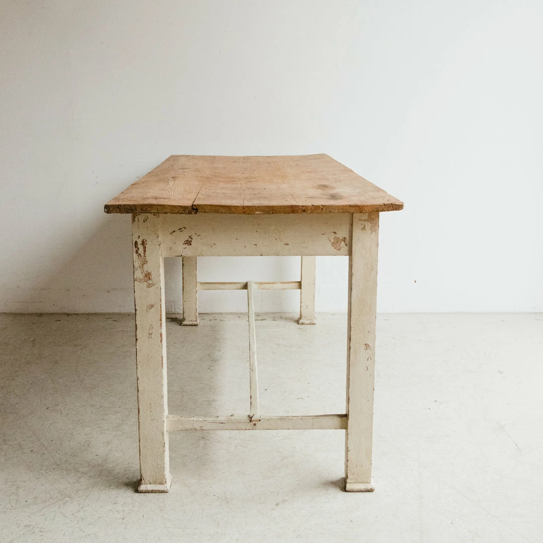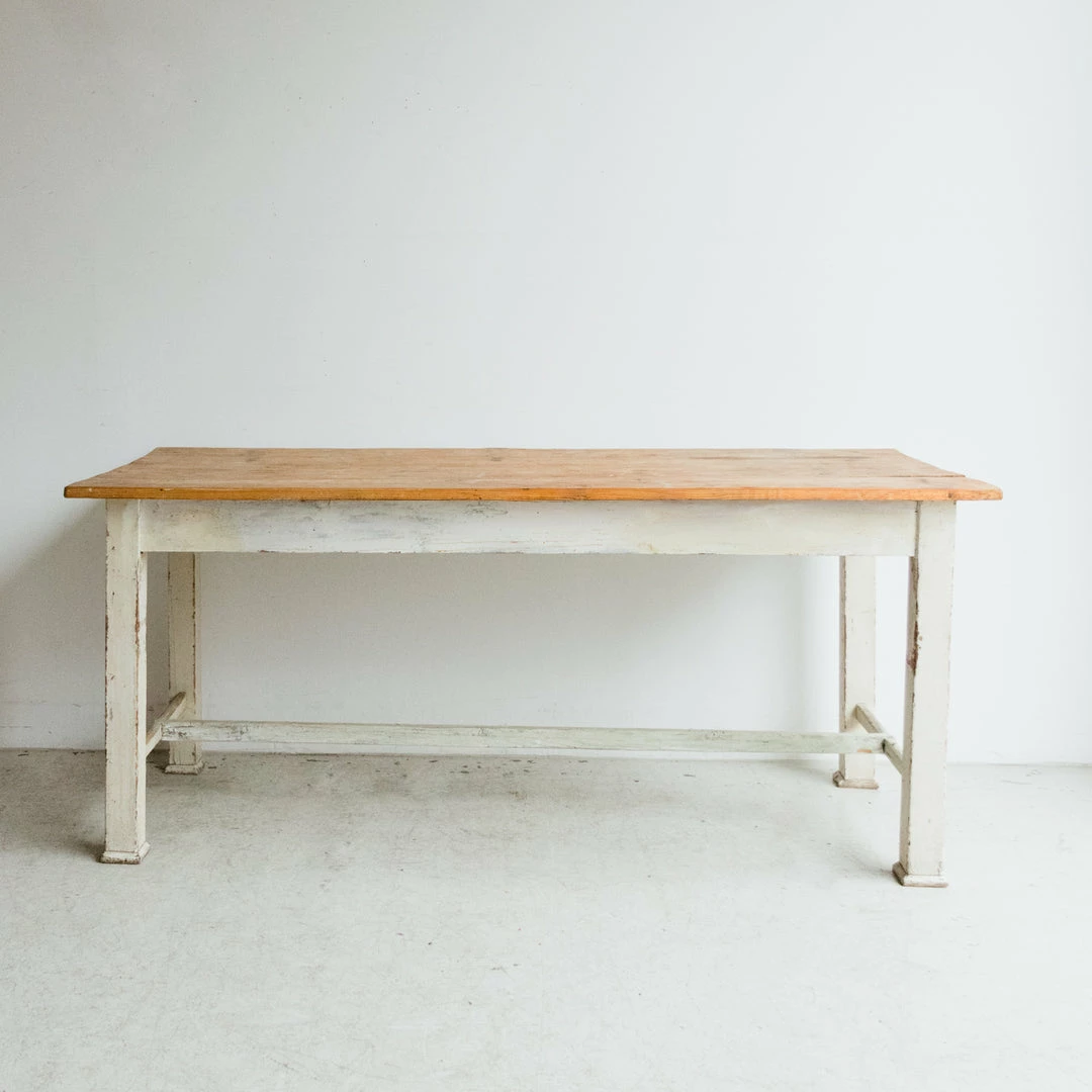 We think this work table is the perfect, quirky piece to serve as a kitchen island, a desk in a studio, or an outdoor garden table. It’s so versatile and beautiful. We love the lovely raw wood top. So French.