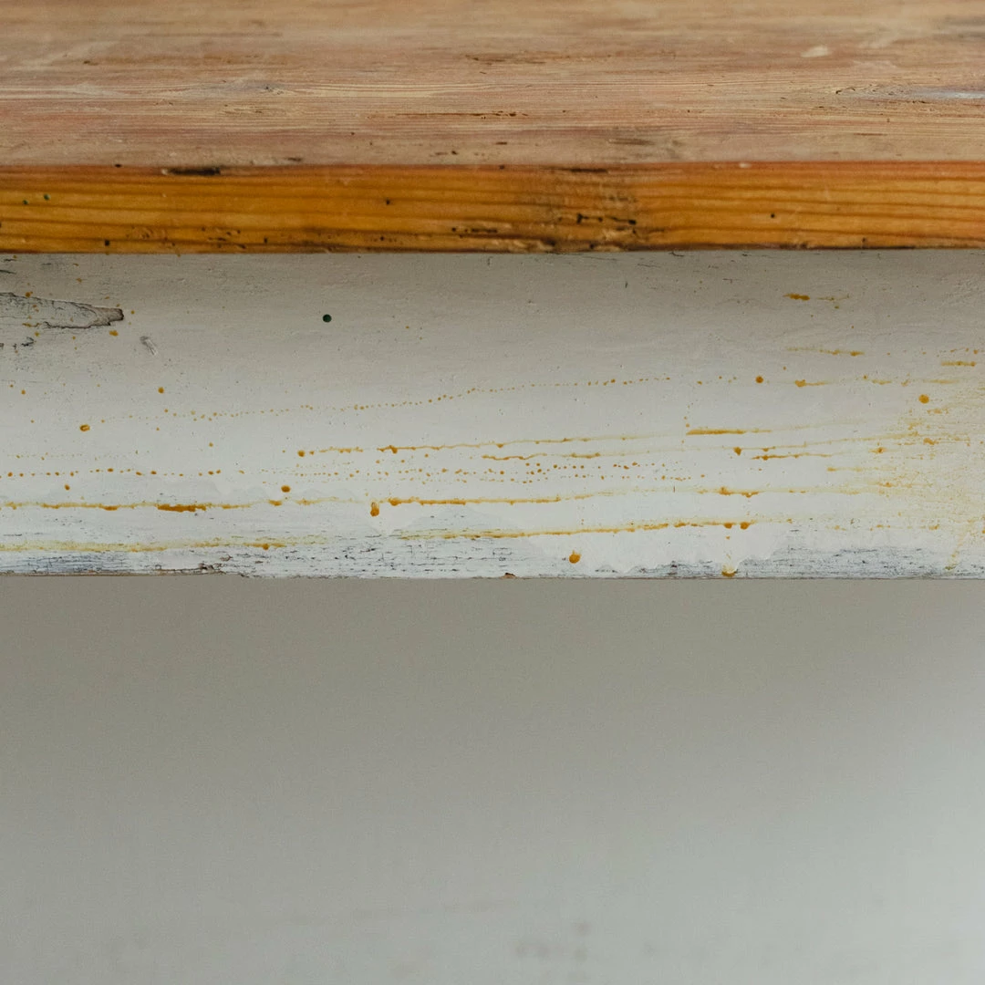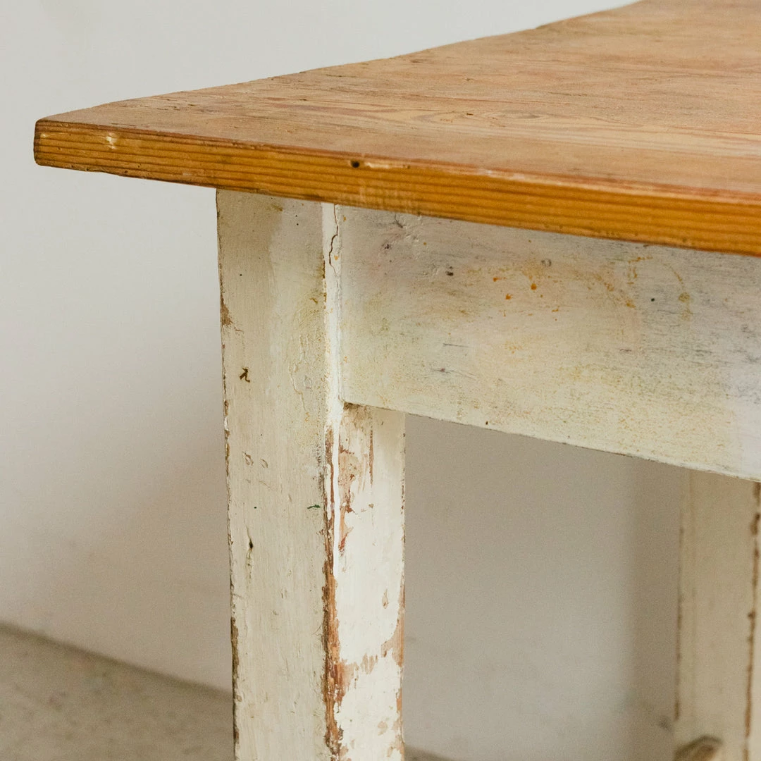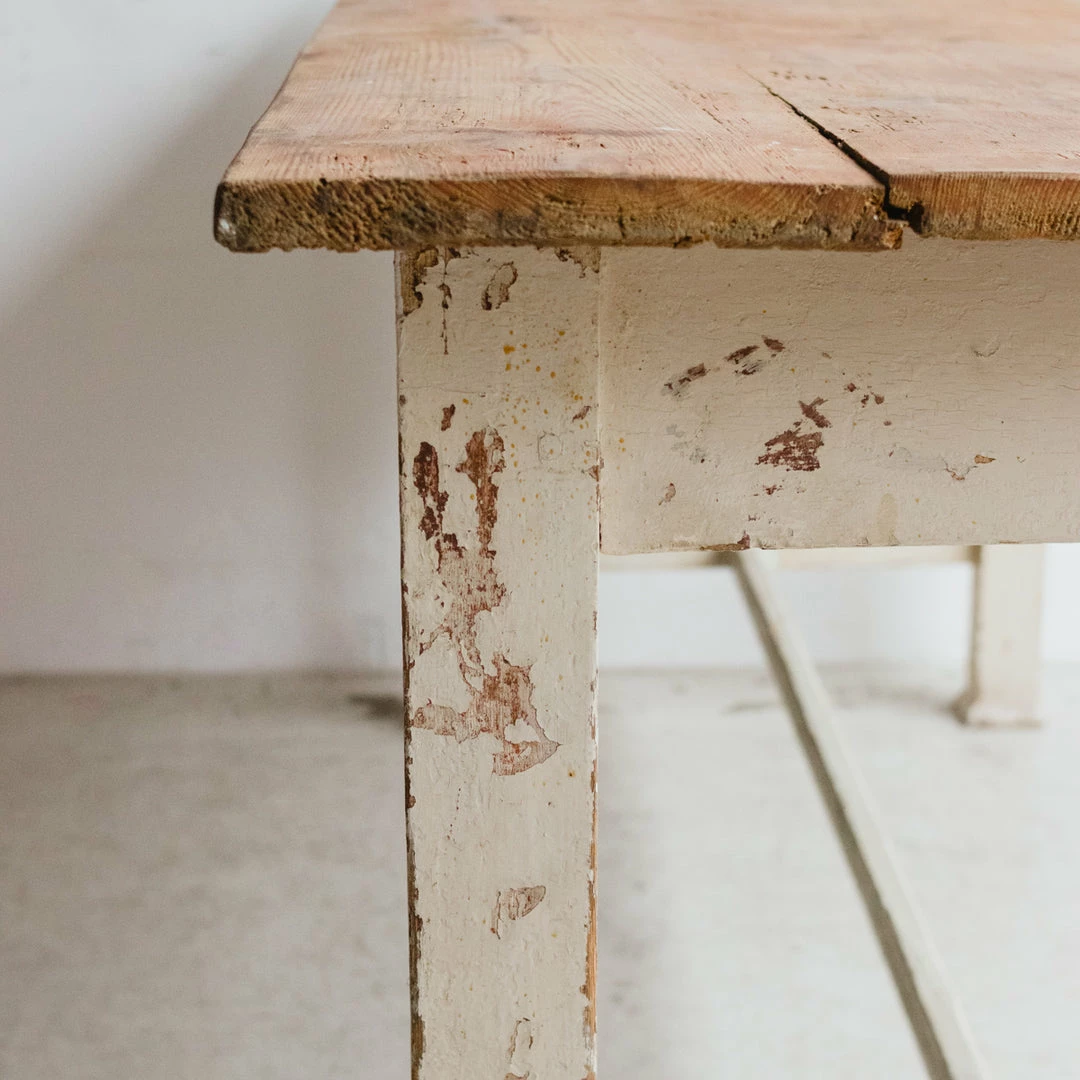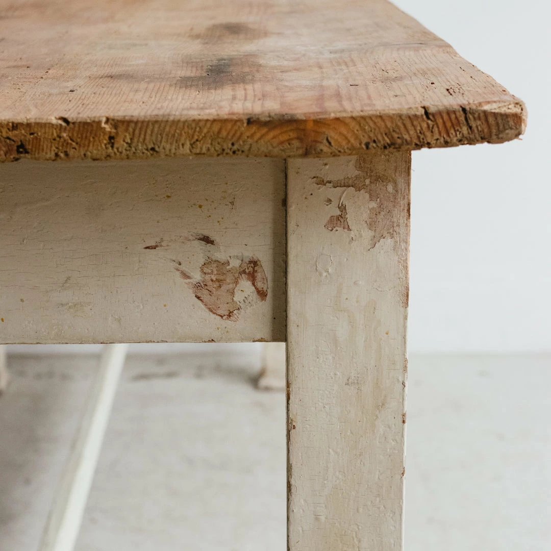 We think this work table is the perfect, quirky piece to serve as a kitchen island, a desk in a studio, or an outdoor garden table. It’s so versatile and beautiful. We love the lovely raw wood top. So French.