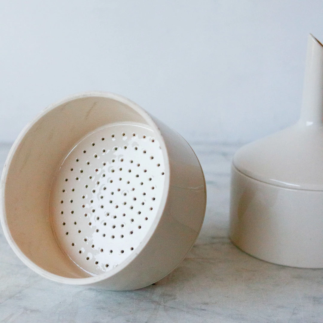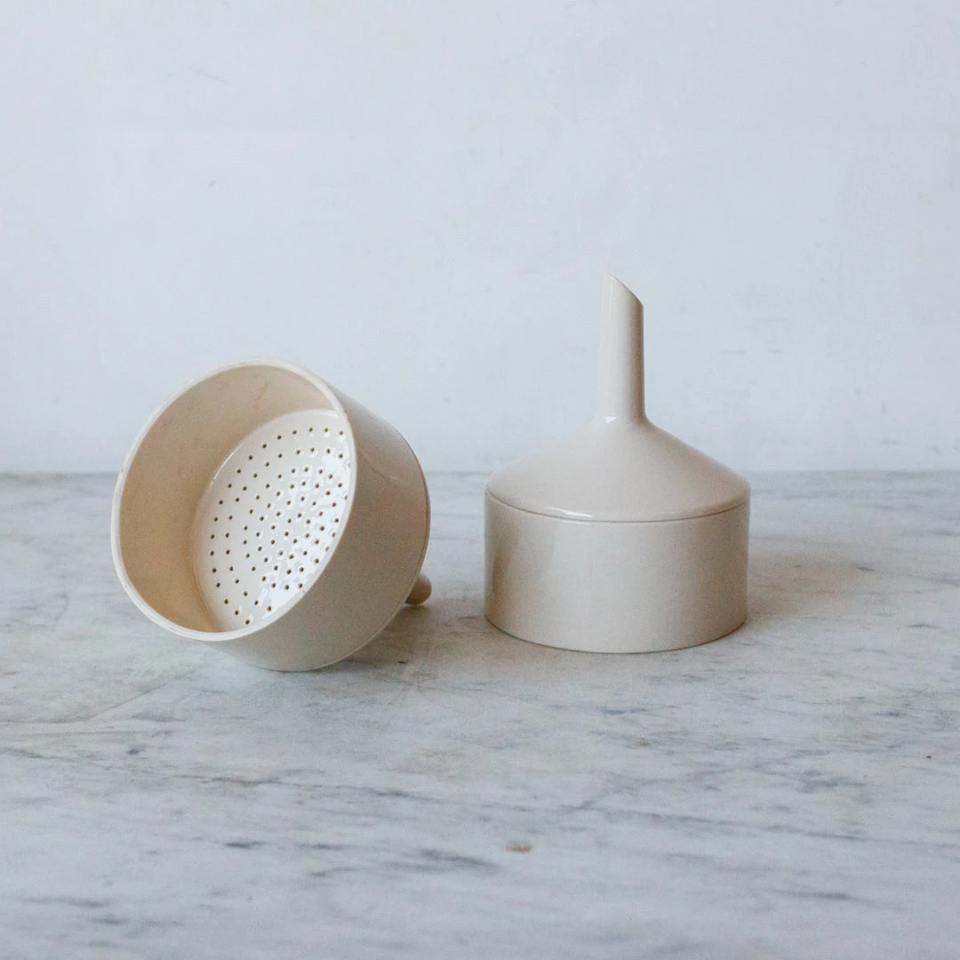 These earthenware funnels were once used in a laboratory in Lyon, France. Of course you can use one in your kitchen for its intended use. But we think they’re beautiful objets d’arts in their own rights.