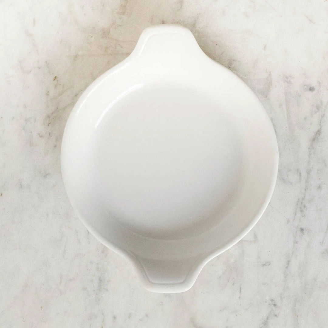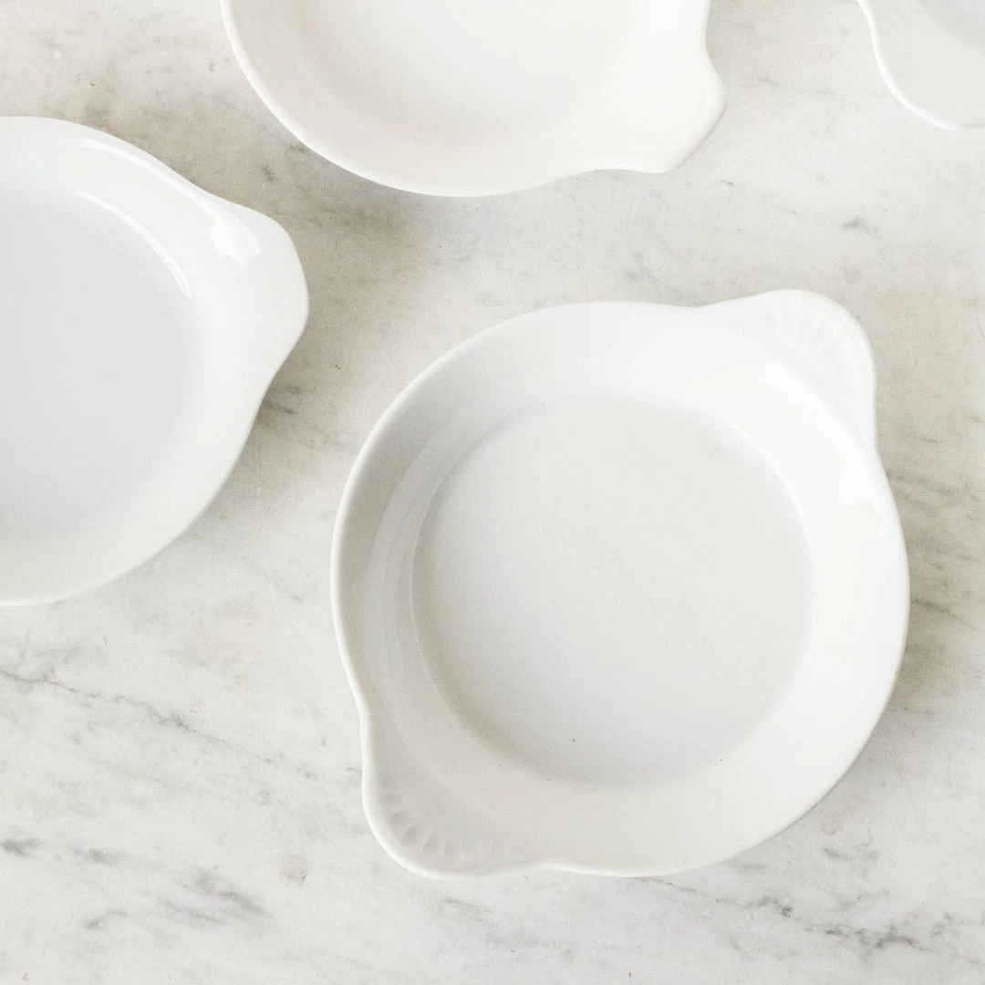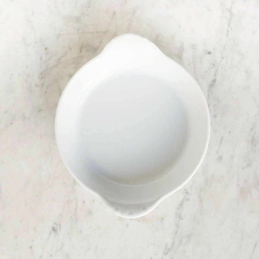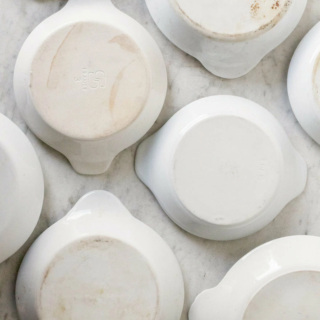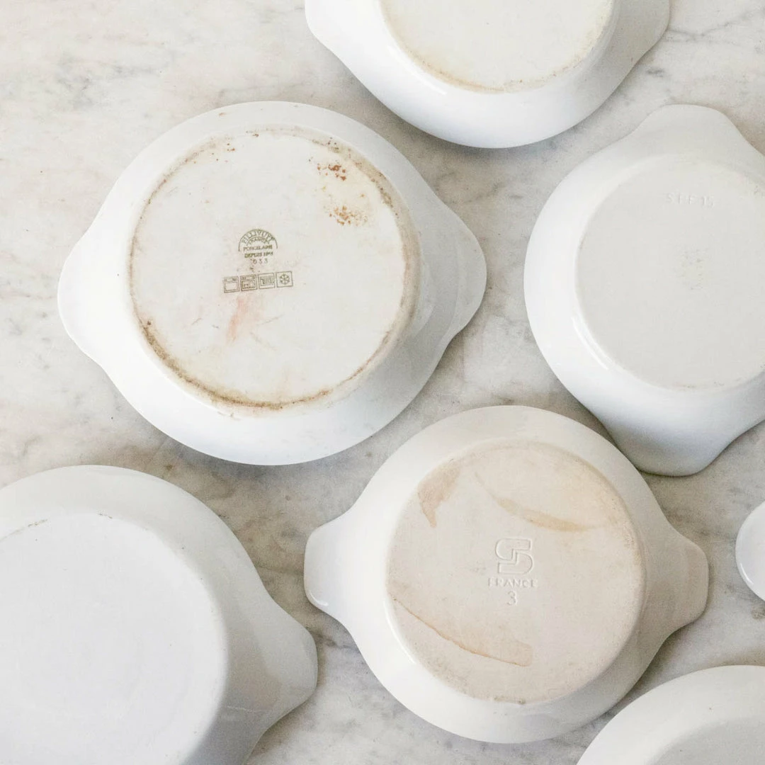 We collected these vintage gratin plates one by one from flea markets across the French countryside. They’re pretty for dessert, or a petite gratin.ย
